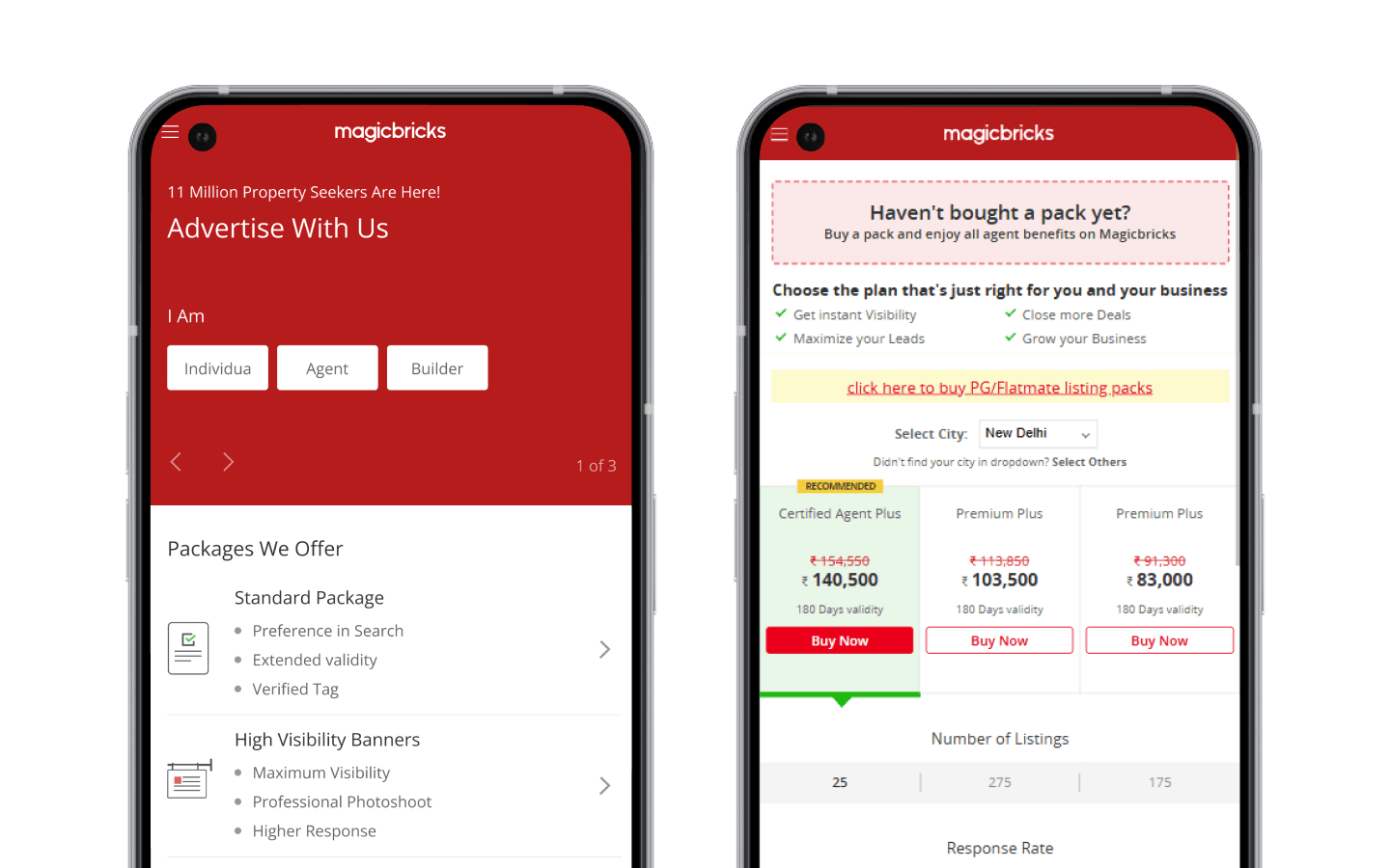 Agents visiting Magicbricks were presented with multiple monetization options—Premium Listings, Certified Listings, and Project Packages—but had no clear way to understand: