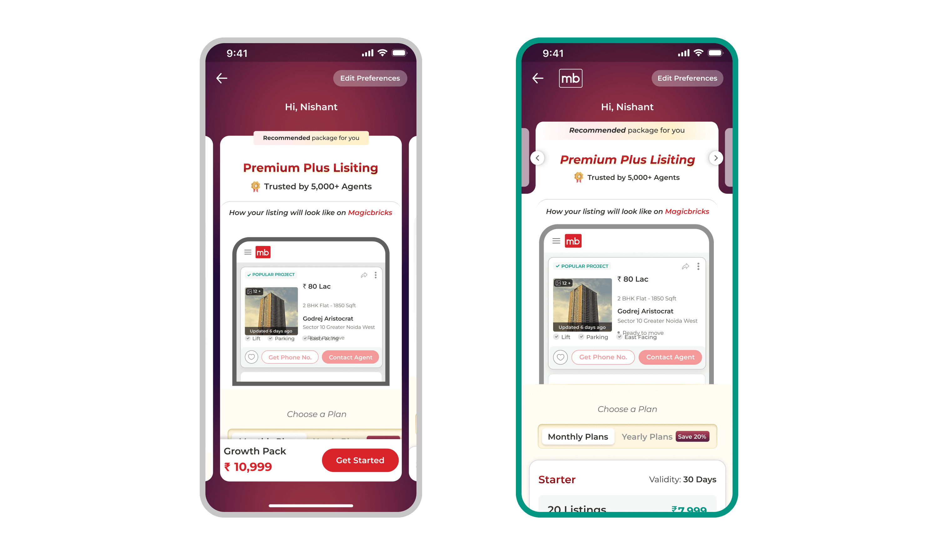 Magicbricks offers multiple monetization plans for real estate agents, but most agents relied on sales representatives to purchase them. The existing experience lacked clarity, personalization, and confidence—making self-serve adoption low.